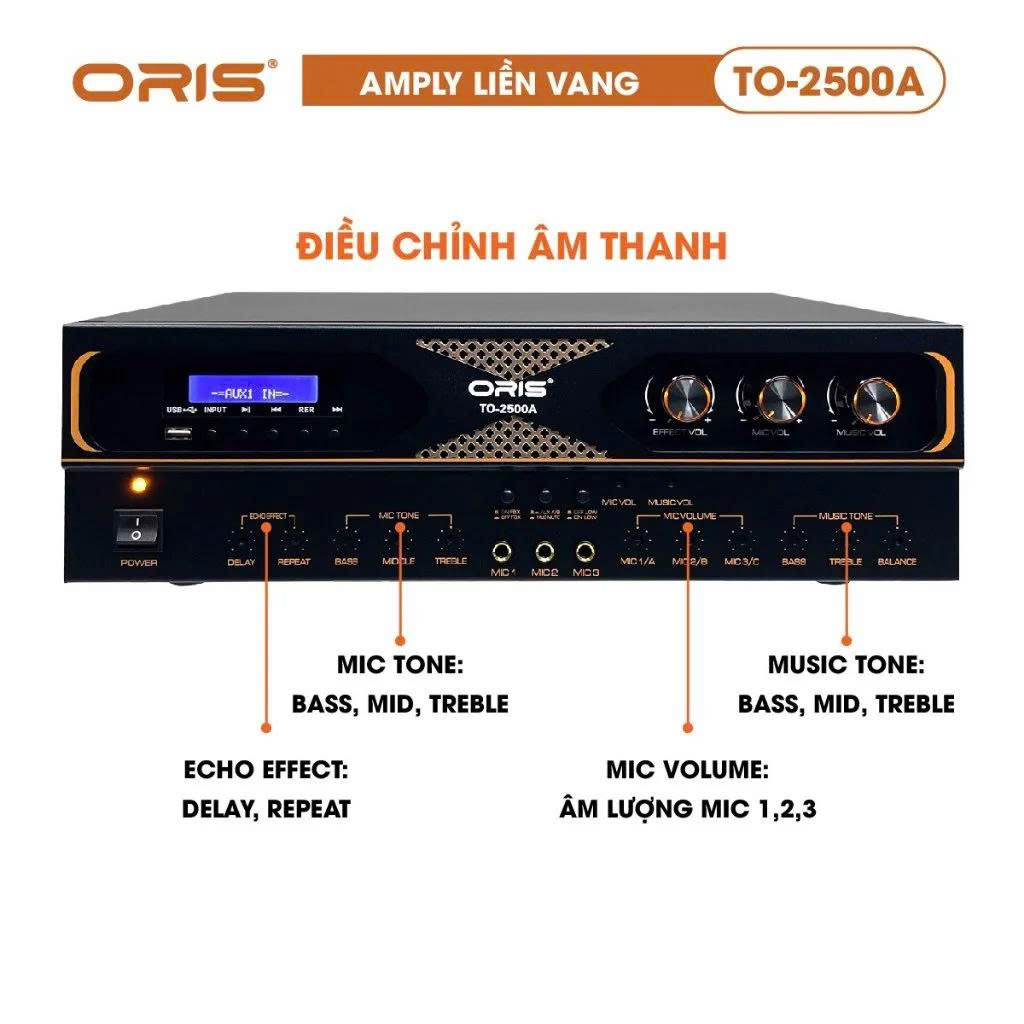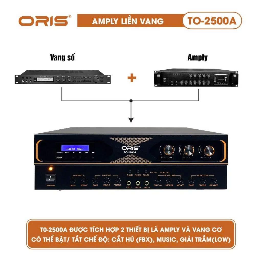 - Amply 2 trong 1 Oris TO-2500A được đánh giá là thiết bị phù hợp với những người có nhu cầu sử dụng âm thanh cao cấp, muốn tiết kiệm chi phí và không gian lắp đặt.