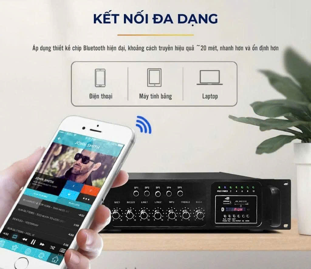 - Amply thông báo dành cho loa phóng thanh và loa âm trần sử dụng phát thông báo, phát nhạc MP3, trò chuyện nơi không gian rộng