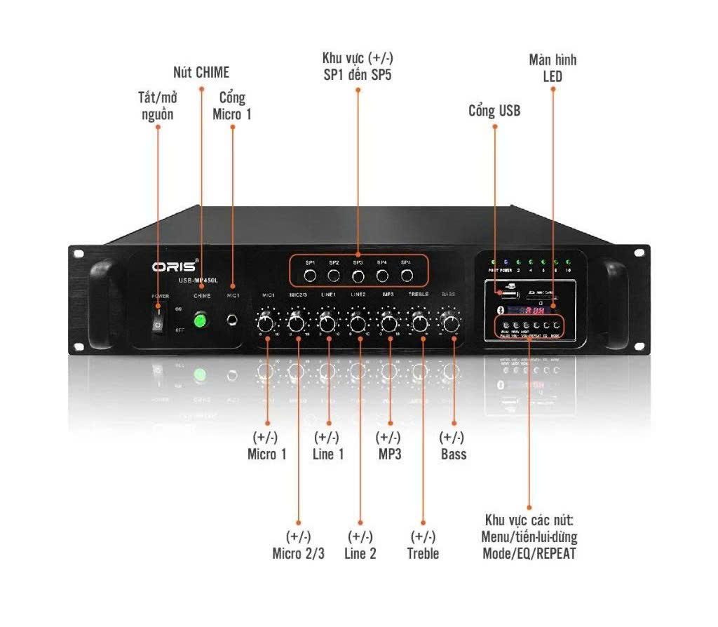 THÔNG SỐ CHI TIẾT AMPLY LOA PHÓNG THANH ORIS MP-450L: