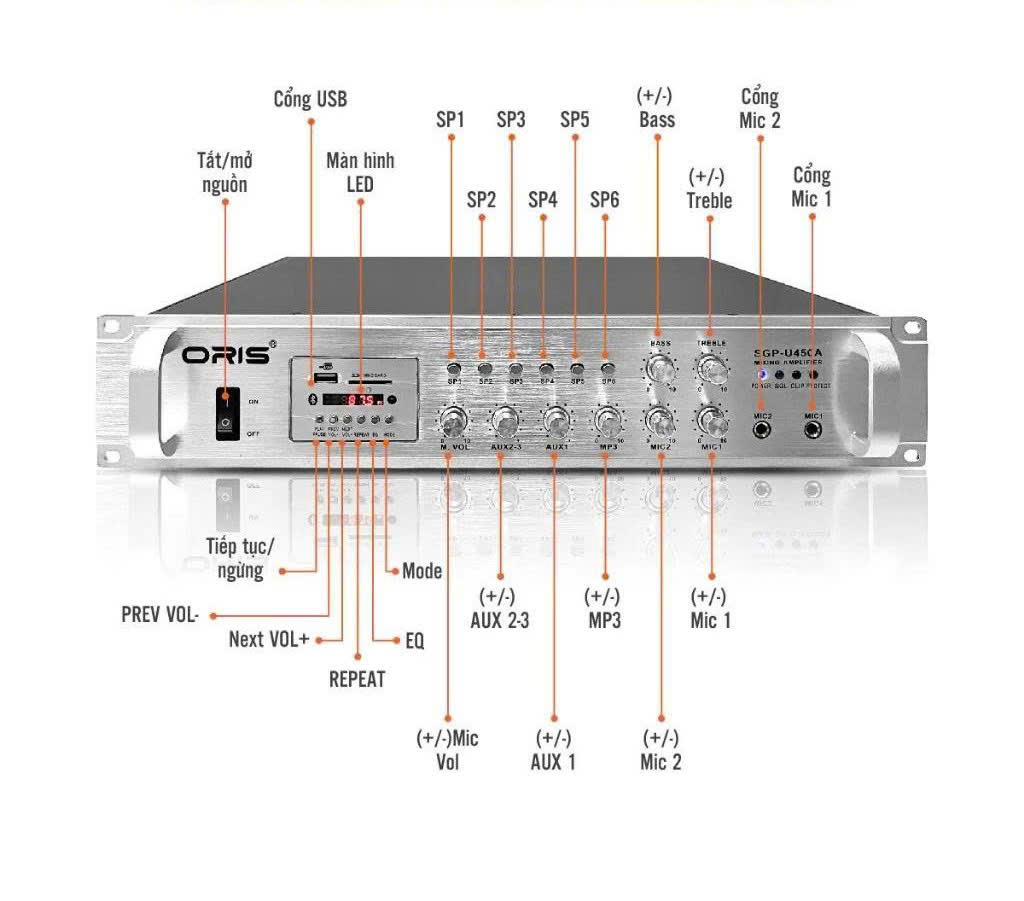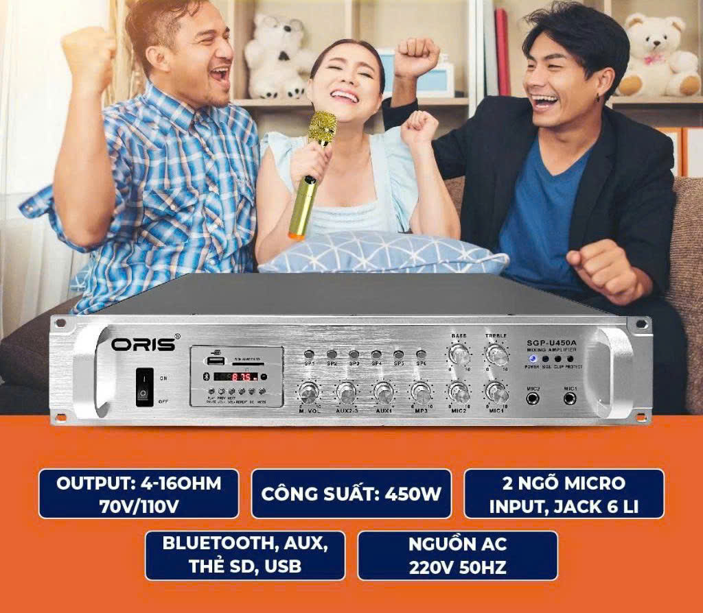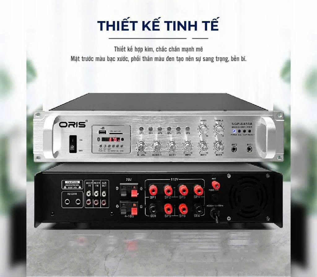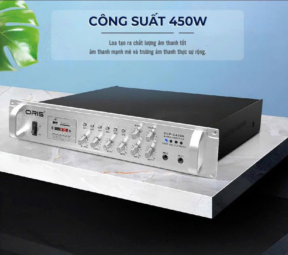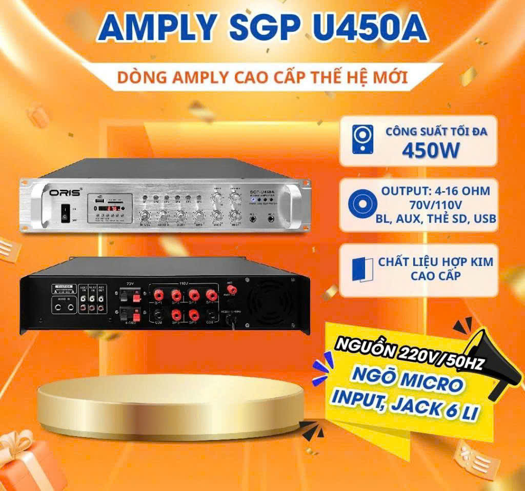 Amply phóng oris SGP U450A công suất 450w chủ yếu lắp đặt cho âm thanh hội trường , phòng họp , văn phòng , trường học , Spa , quán trà sữa , quán café, thẩm mĩ viện , phòng tập gym-yoga , Trường học, biệt thự , nhà hàng , khách sạn , shop quần áo , ….