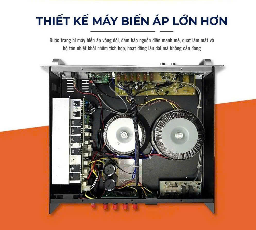 - Output: 4 kênh 110V, 1 kênh 4-16 ohm, 1 kênh output 70V
