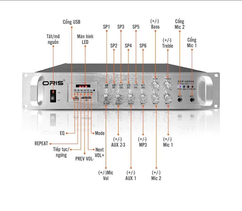 THÔNG SỐ CHI TIẾT AMPLY LOA PHÓNG THANH ORIS U550A: