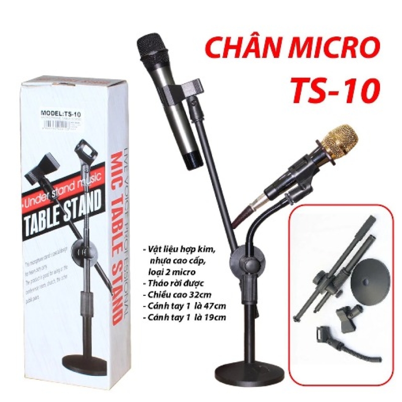 Chân Micro TS10 là sử dụng đầu kẹp để giữ micro, hầu hết các loại micro trên thị trường đều có thể để vừa. Quá tiện lợi đúng không nào?