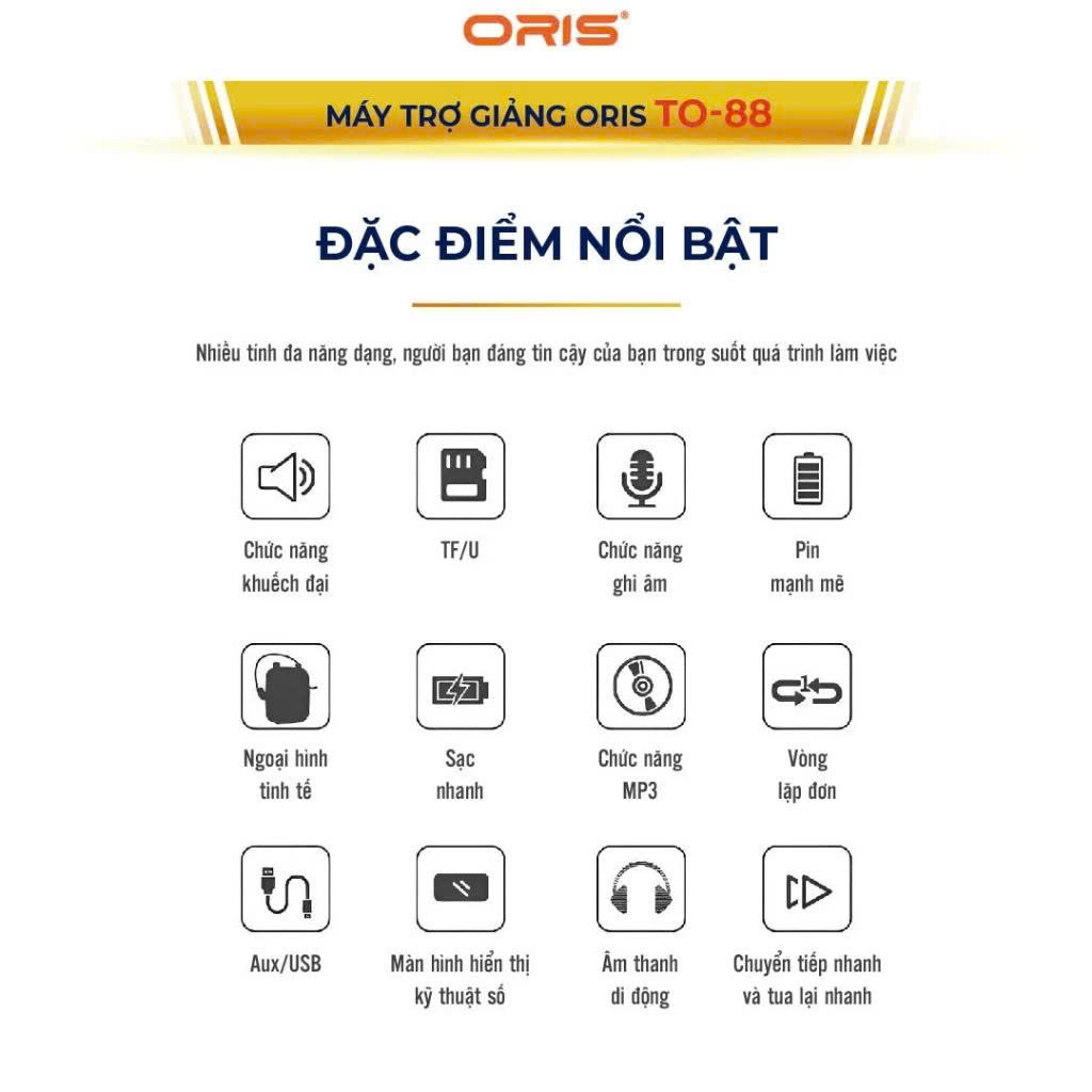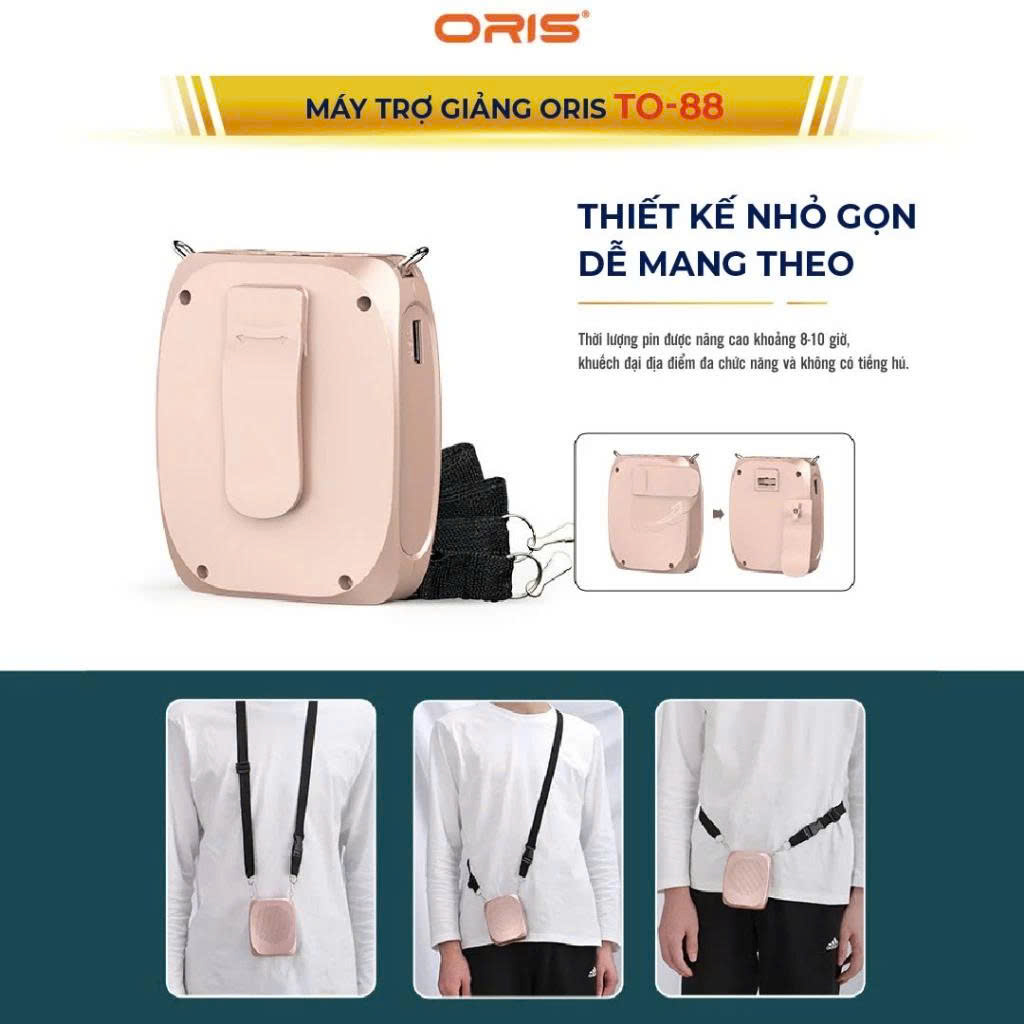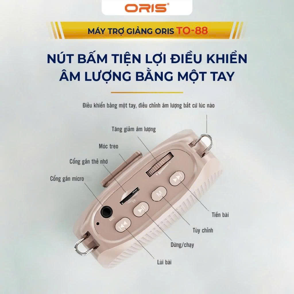 Máy trợ giảng không dây ORIS TO-88 công suất 10W kèm 1 micro cài áo, 1 micro choàng đầu có dây tích hợp Echo giúp giọng trong, sáng hơn