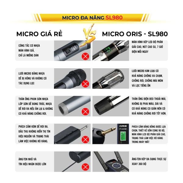 Micro Oris SL980 không chỉ mang đến âm thanh chất lượng cao mà còn là người bạn đồng hành đáng tin cậy cho mọi buổi biểu diễn và sự kiện quan trọng. Hãy trải nghiệm sự khác biệt mà Micro Oris SL980 mang lại và cảm nhận sự chuyên nghiệp trong từng nốt nhạc!