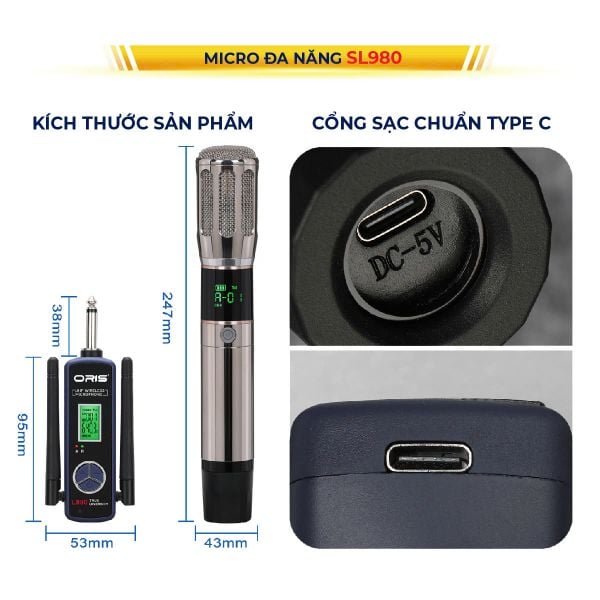 Thông số kỹ thuật micro đa năng không dây Oris SL980: