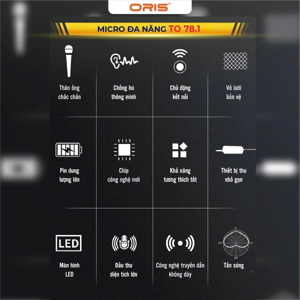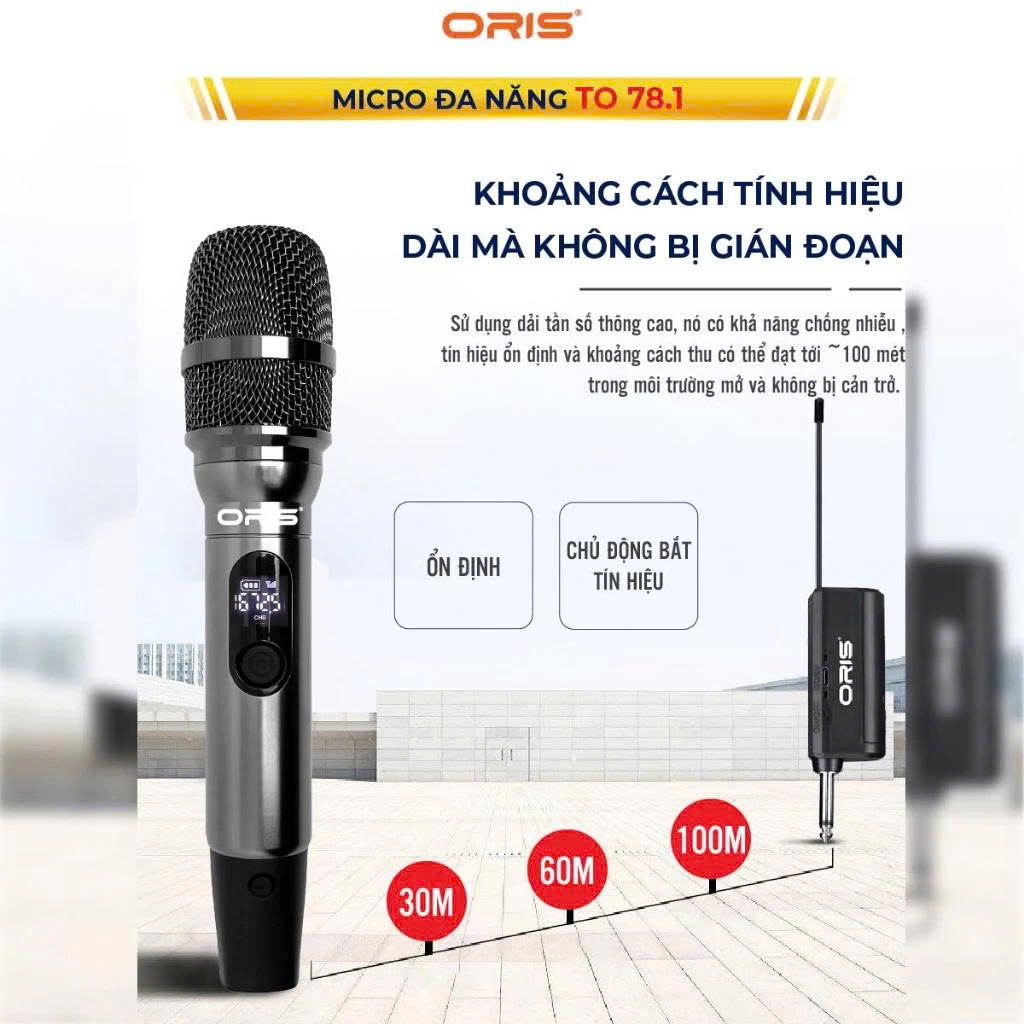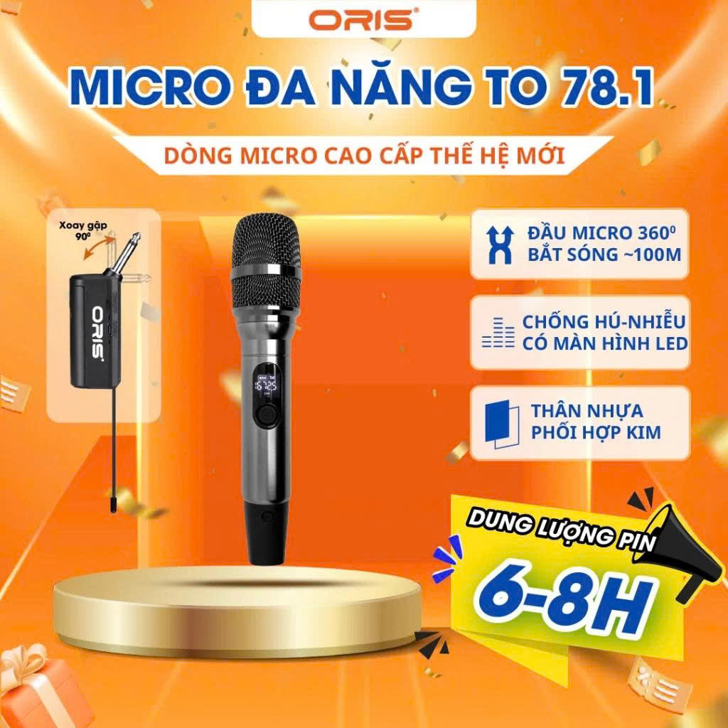 Micro Đa Năng Không Dây Oris TO 78.1 UHF Chống Nhiễu, Tín Hiệu Ổn Định, Pin Sạc, Thân Kim Loại