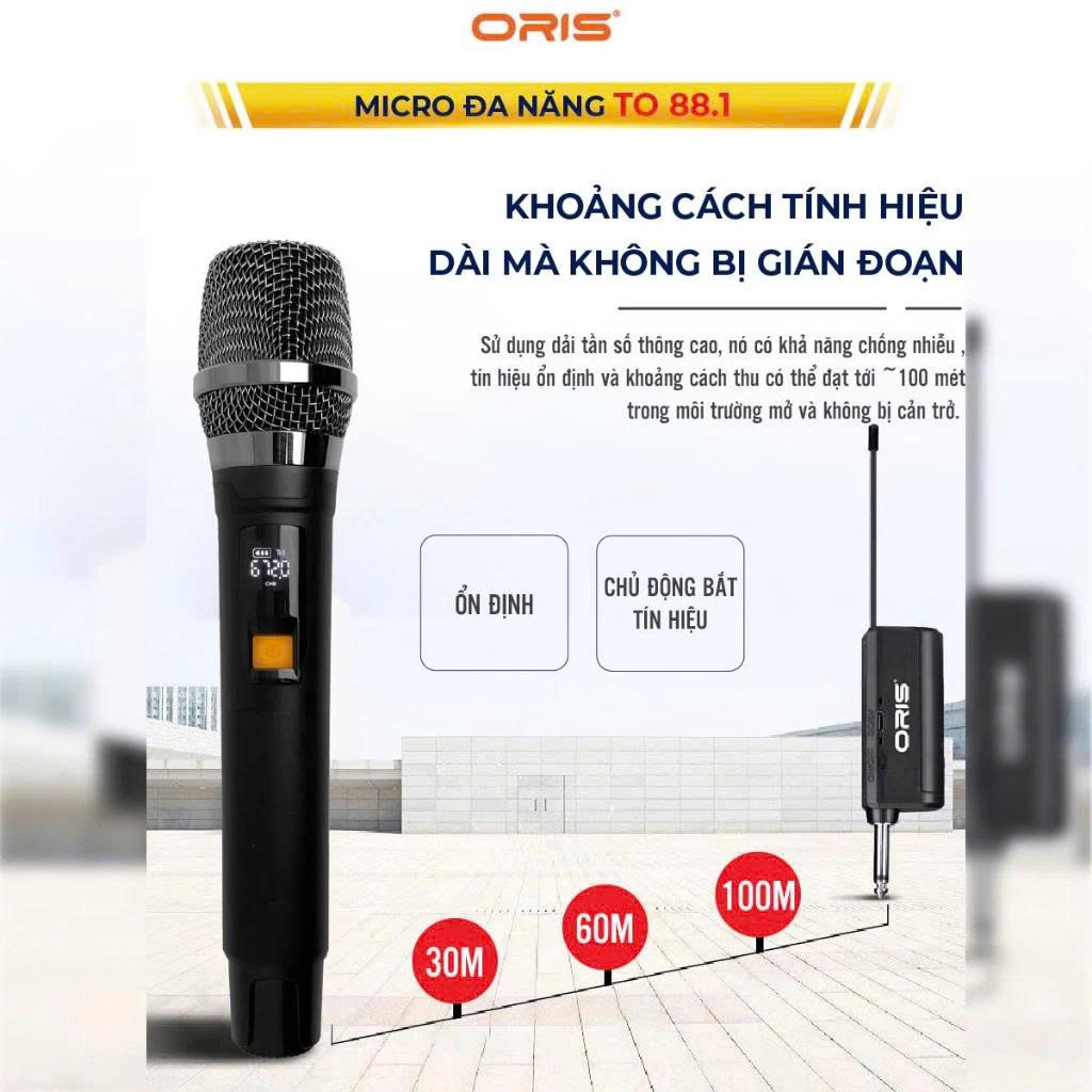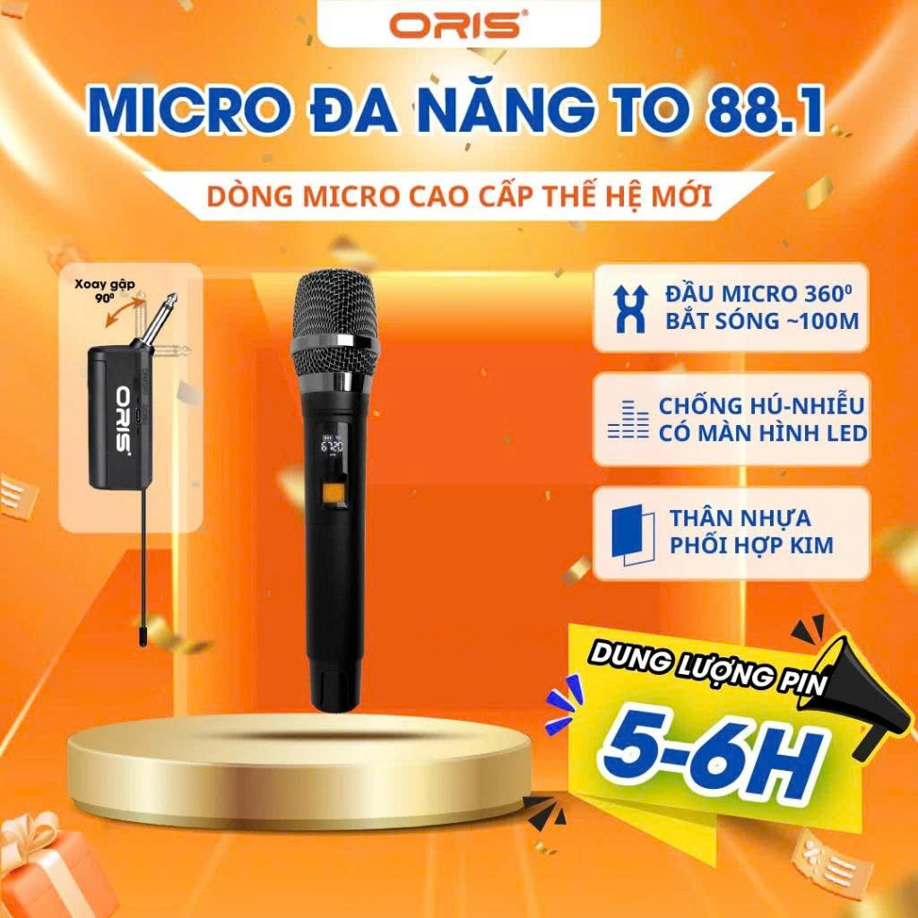Micro Đa Năng Không Dây Oris TO 88.1 UHF Chống Nhiễu, Tín Hiệu Ổn Định, Pin Sạc, Thân Kim Loại