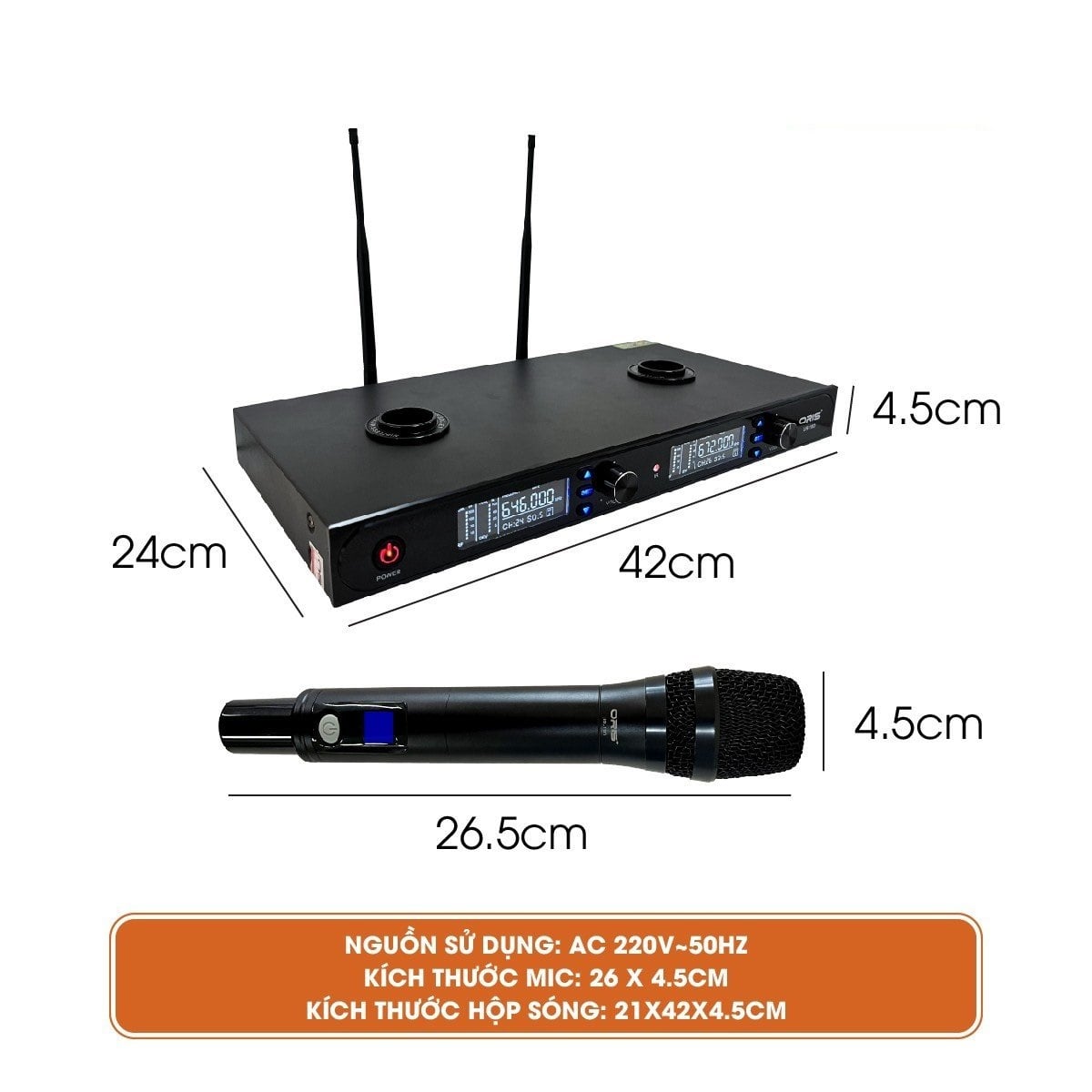 Micro không dây karaoke hộp sóng chính hãng ORIS UR19D, mic hộp sóng chất lượng cao, chống hú, chống nhiễu