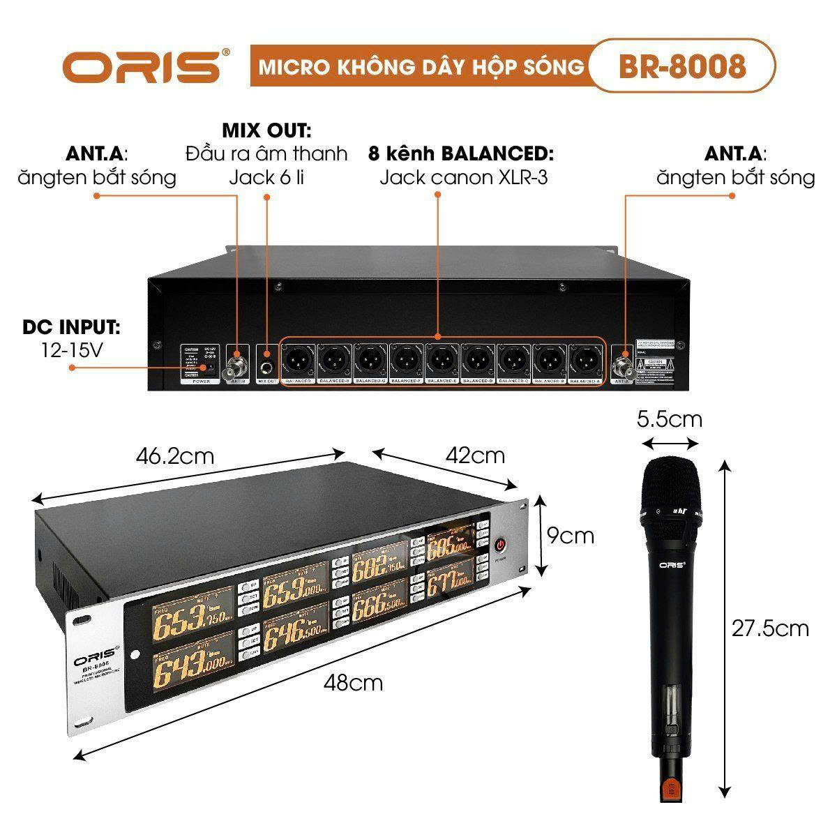 - Micro karaoke không dây Oris BR-8008 là dòng micro có chất lượng âm thanh tuyệt vời, khả năng truyền âm thanh ổn định và thiết kế đẹp mắt.
