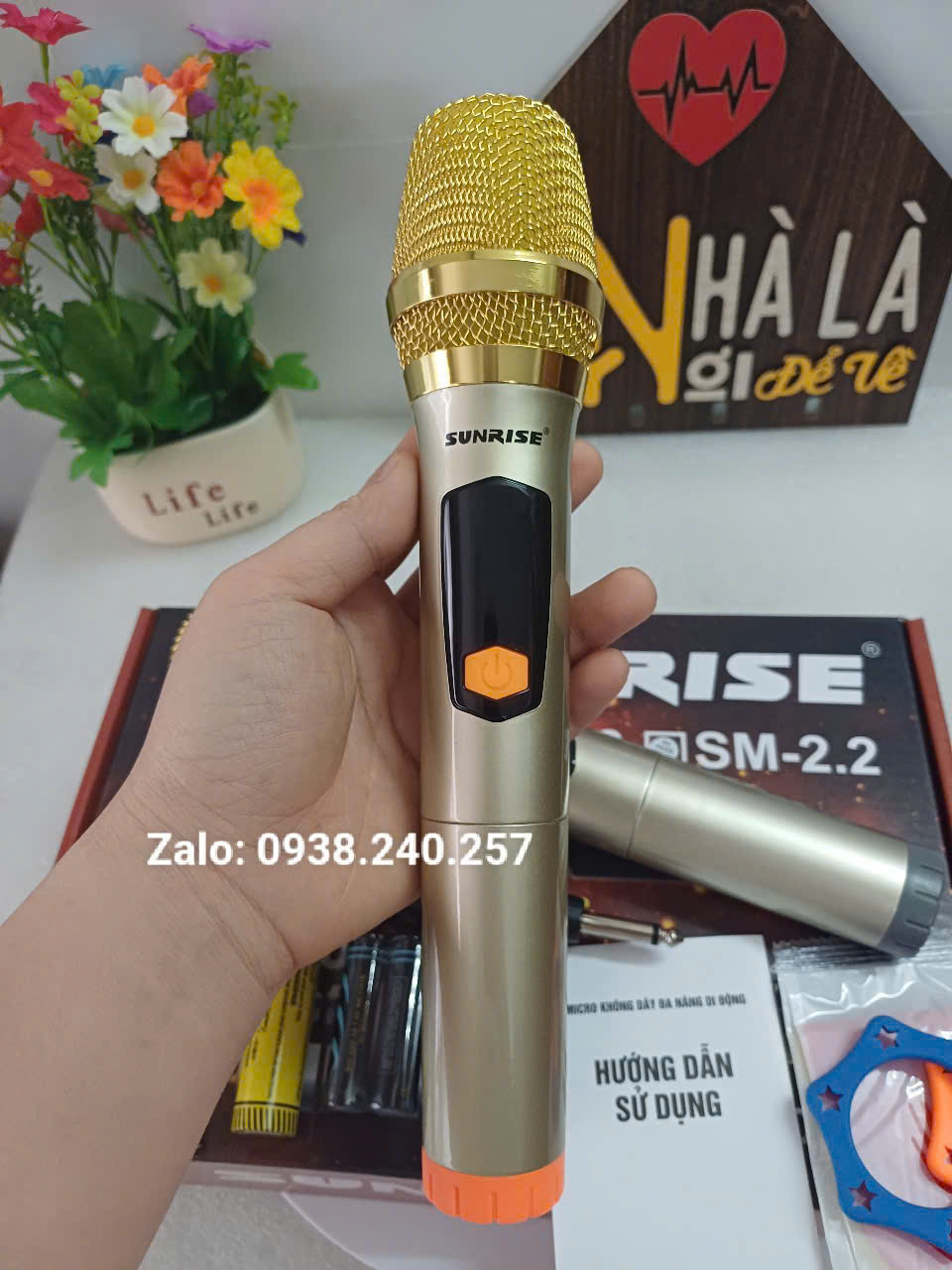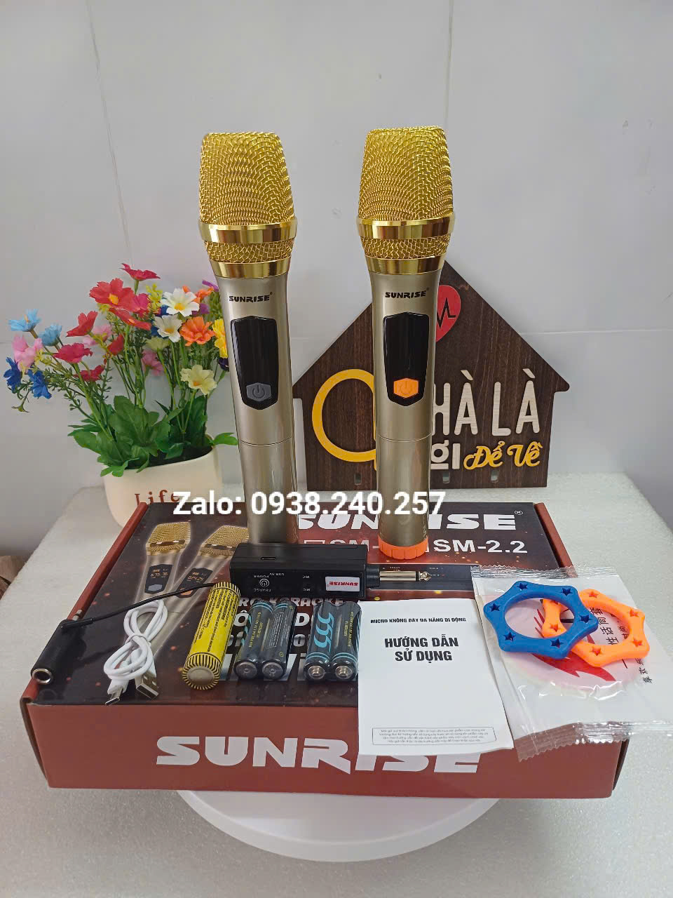 Micro không dây karaoke sunrise SM-2.2 ( 2 micro), mic đa năng sử dụng sóng UHF, chống hú, độ nhạy cao
