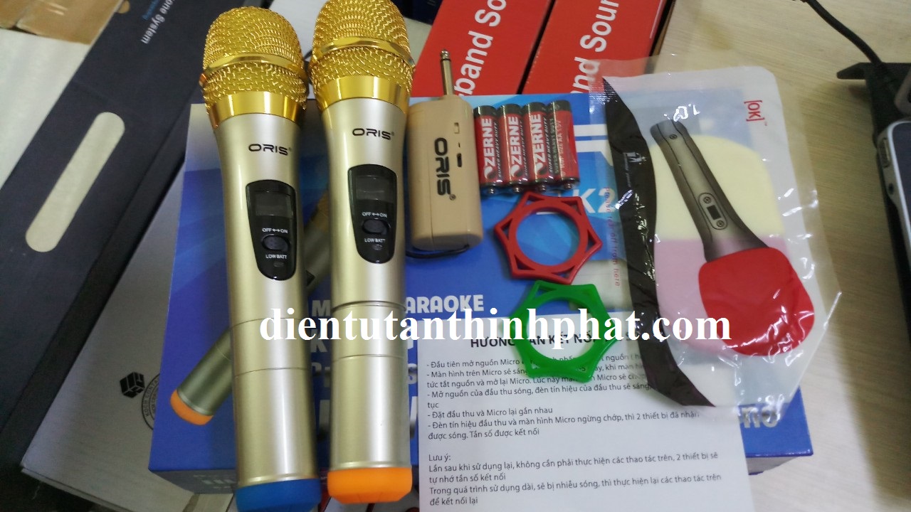 Model : Oris K2 Phụ kiện : 2 micro , 1 dây sạc, 1 đầu thu có cổng kết nối 6.5 mm